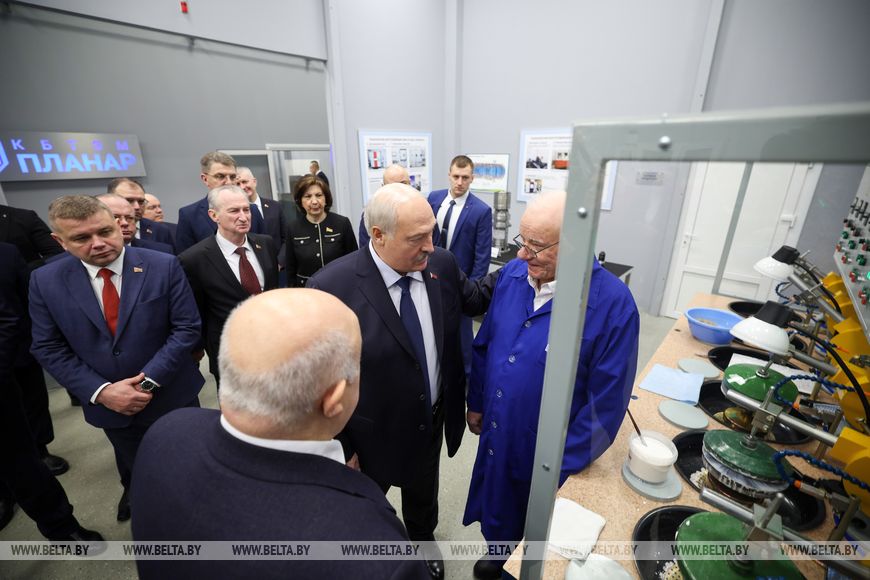 Президент Беларуси Александр Лукашенко в Минске при посещении ОАО “Планар” принял участие в церемонии запуска Центра спецтехнологического оборудования для производства фотошаблонов и микрооптики, пишет БЕЛТА.