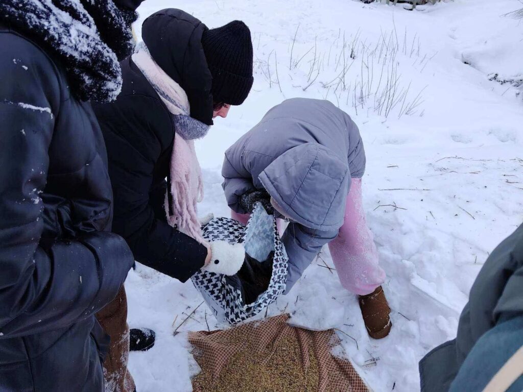 Студенты Чечерского техколледжа из волонтерского отряда “Доброе сердце” помогают птицам выжить в мороз.