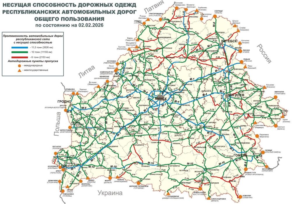 В Беларуси обновлен сводный перечень республиканских дорог с допустимой несущей способностью дорожных одежд 6 т, 10 т и 11,5 т на ось, пишет БЕЛТА.