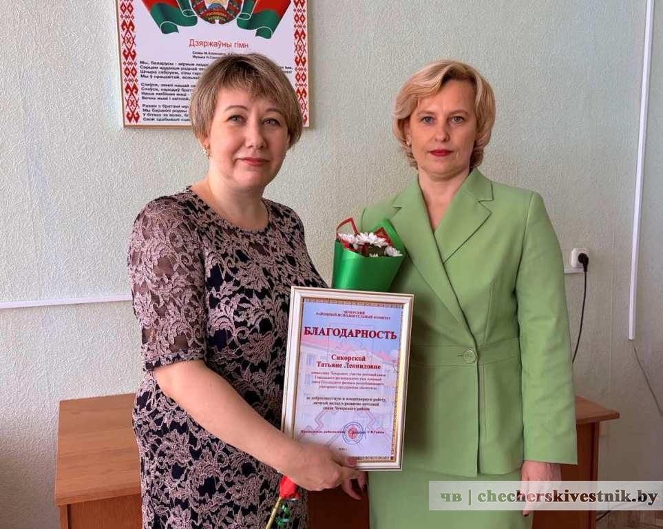 Заместитель председателя райисполкома Наталья Пшеничных вручила Татьяне Леонидовне благодарность за многолетний добросовестный труд. Это высокая оценка ее работы, которую она выполняет с душой на протяжении многих лет.