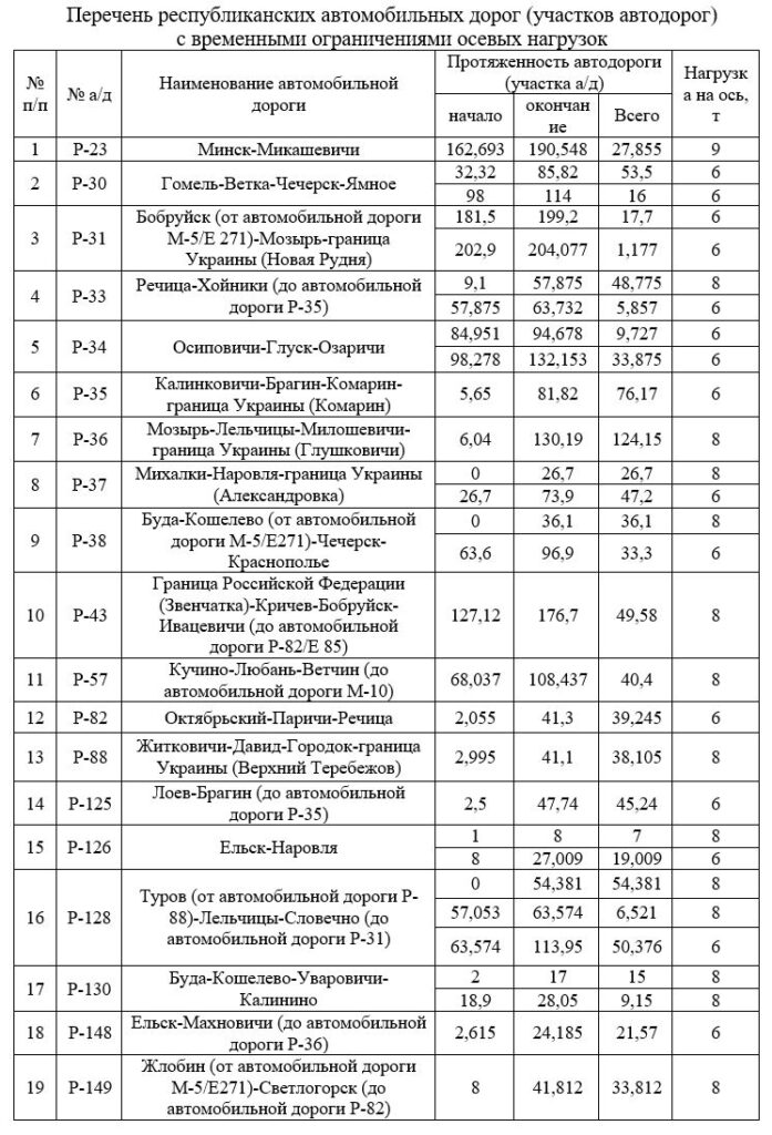 С 20 марта по 16 апреля 2026 года сезонные ограничения движения на республиканских дорогах будут введены в Гомельской области.
