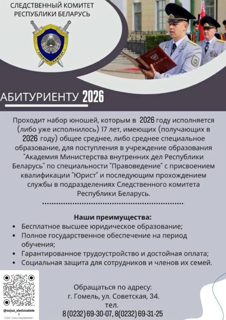 Подразделения Следственного комитета осуществляют отбор кандидатов для поступления в 2026 году на следственно-экспертный факультет Академии Министерства внутренних дел для обучения в интересах Следственного комитета.