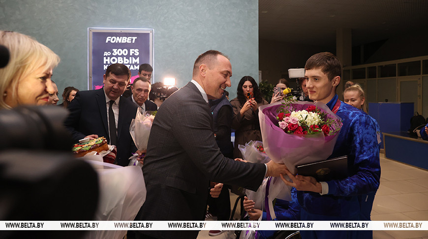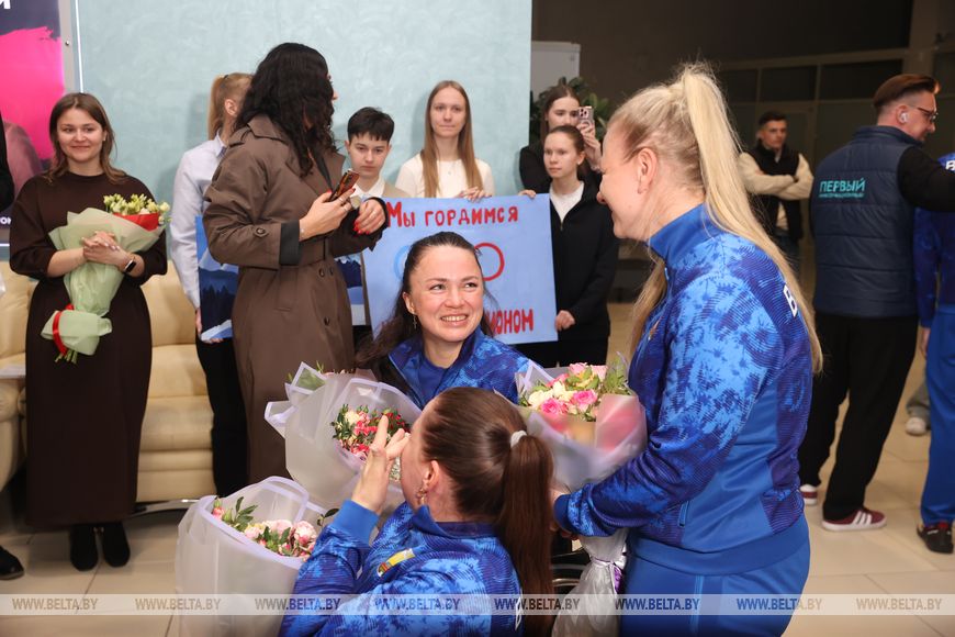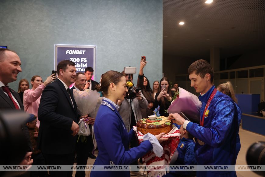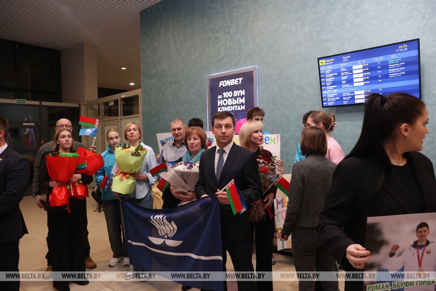 Встретить атлетов в Национальном аэропорту Минск собрались родные и близкие, сотрудники Министерства спорта, Паралимпийского комитета Беларуси и РЦОП по паралимпийским и дефлимпийским видам спорта, а также представители Белорусского лыжного союза и БГУФК. Министр труда и социальной защиты Андрей Лобович зачитал поздравительный адрес от Президента Республики Беларусь.