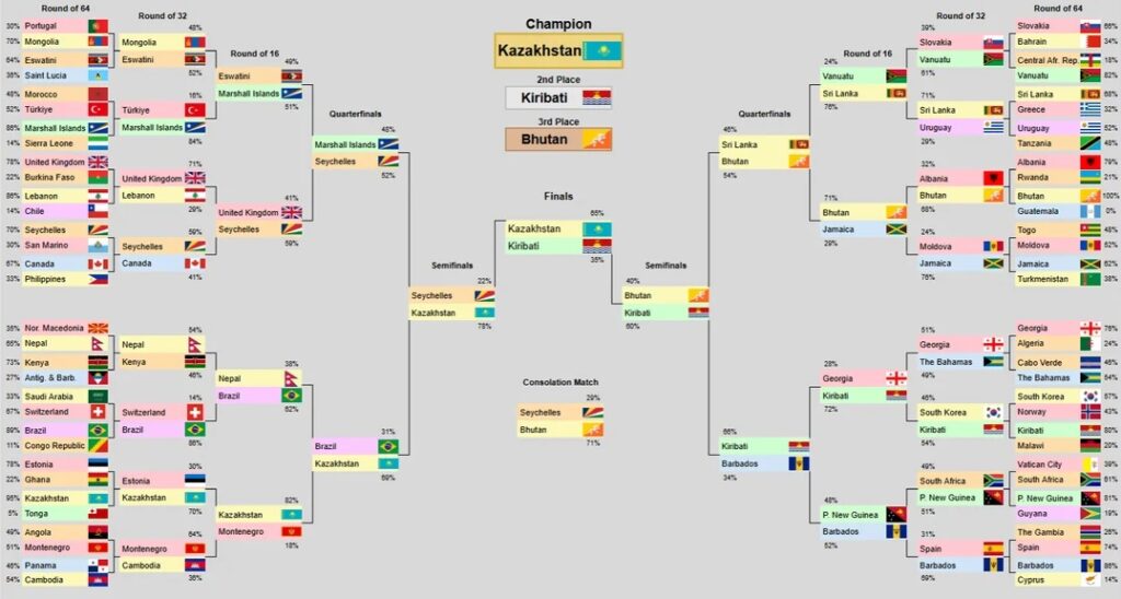 В полуфинале казахстанский флаг победил флаг Сейшельских Островов, а в финале – государственный символ Кирибати. Третье место по итогам голосования у флага Бутана.
