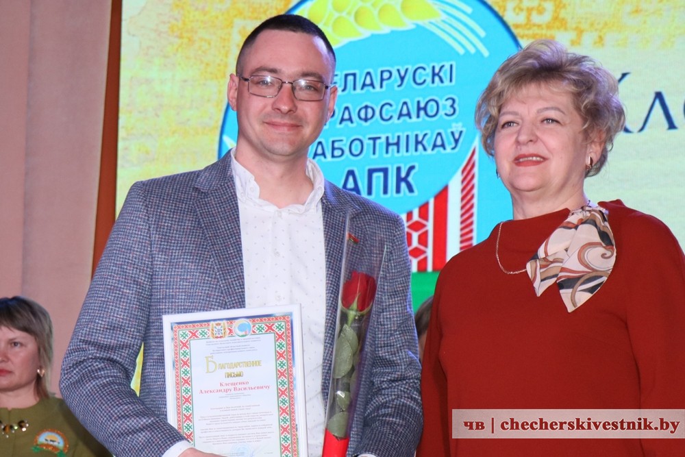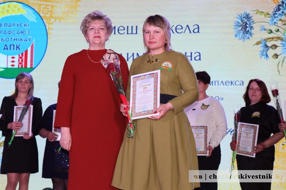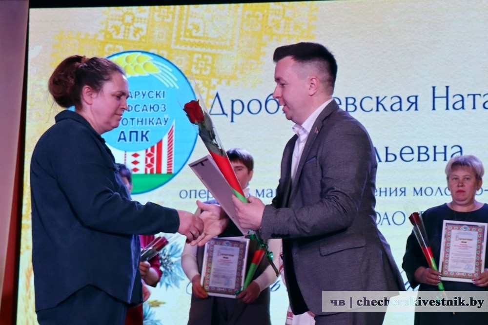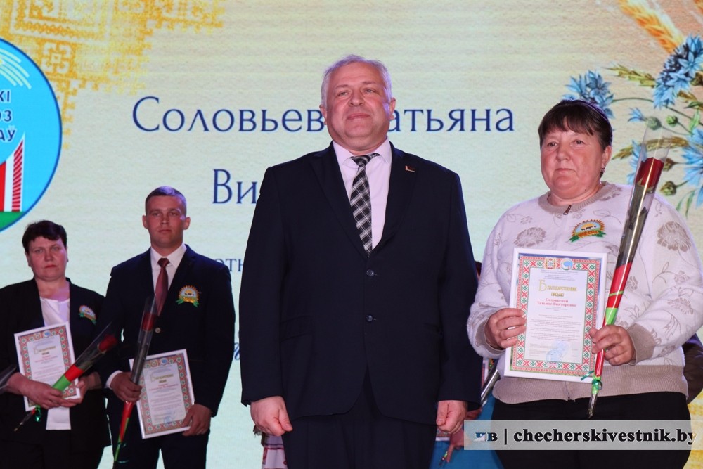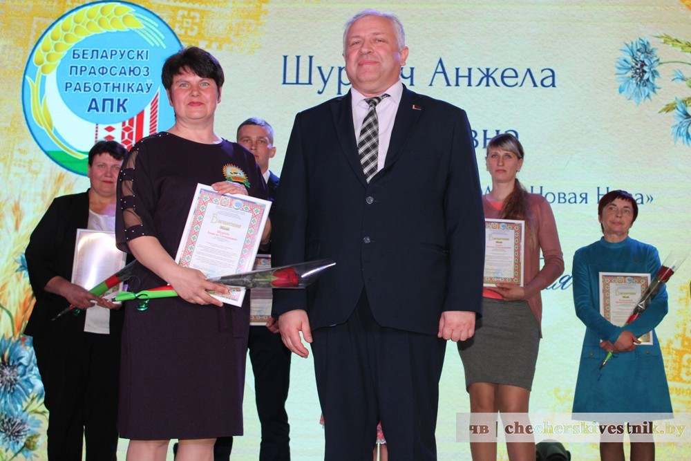 Особую гордость за своих земляков испытали чечеряне: сразу несколько представителей района поднялись на сцену за заслуженными наградами. Благодарственные письма комитета по сельскому хозяйству и продовольствию облисполкома и областного комитета профсоюза работников АПК вручены оператору машинного доения ОАО “Звезда” Юлии Шумановой, животноводу ОАО “Отор” Людмиле Курбацкой и главному зоотехнику ОАО “Вознесенск” Александру Клещенко. Благодарственных писем Гомельского областного агропромышленного союза удостоились главный ветврач ОАО “Звезда” Сергей Климов и ветеринарный фельдшер ОАО “Отор” Егор Новиков.