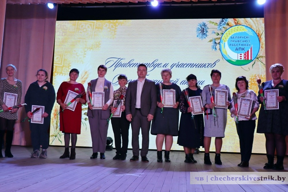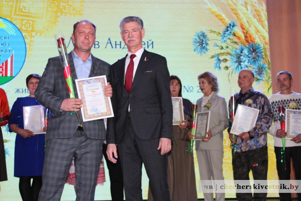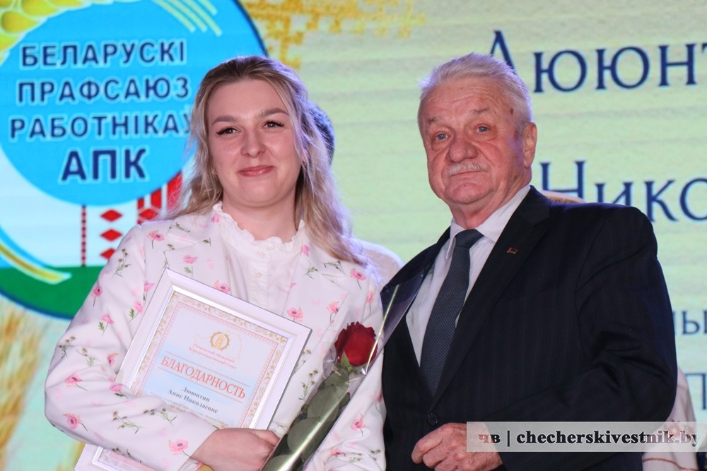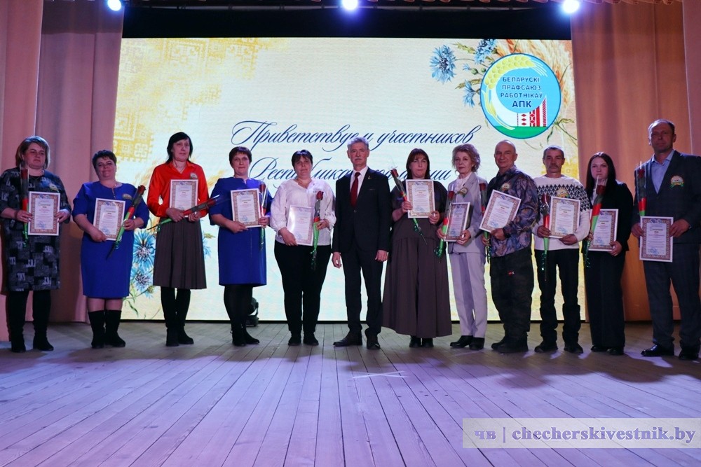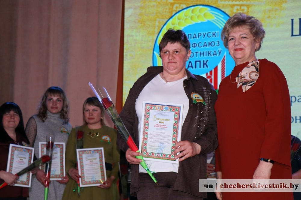 Особую гордость за своих земляков испытали чечеряне: сразу несколько представителей района поднялись на сцену за заслуженными наградами. Благодарственные письма комитета по сельскому хозяйству и продовольствию облисполкома и областного комитета профсоюза работников АПК вручены оператору машинного доения ОАО “Звезда” Юлии Шумановой, животноводу ОАО “Отор” Людмиле Курбацкой и главному зоотехнику ОАО “Вознесенск” Александру Клещенко. Благодарственных писем Гомельского областного агропромышленного союза удостоились главный ветврач ОАО “Звезда” Сергей Климов и ветеринарный фельдшер ОАО “Отор” Егор Новиков.