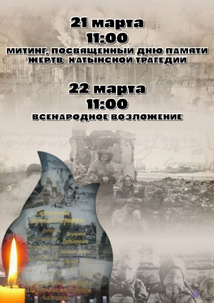 Анонс В Чечерском районе пройдут мероприятия, приуроченные ко Дню памяти жертв Хатынской трагедии 19.03.2026 21 и 22 марта на Чечерщине пройдут мероприятия, приуроченные ко Дню памяти жертв Хатынской трагедии. Поделиться информацией: Continue Reading Previous В Чечерске 24 марта пройдет ярмарка вакансий для граждан, не занятых в экономикеNext Что можно посмотреть в кинотеатре “Октябрь” 26-29 марта и 1 апреля More Stories Анонс 17 апреля в Чечерском районе пройдет Пасхальный фестиваль 14.04.2026 Анонс Что можно посмотреть в кинотеатре “Октябрь” 16-19 и 22 апреля 13.04.2026 Анонс Что можно посмотреть в кинотеатре “Октябрь” 9-12 и 15 апреля 06.04.2026 Добавить комментарий Отменить ответ Ваш e-mail не будет опубликован.Комментарий Имя E-mail Сайт Δ Этот сайт использует Akismet для борьбы со спамом. Узнайте, как обрабатываются ваши данные комментариев.