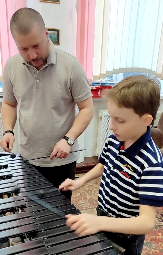А еще Алексей Кулеш очень скромный. Он часами готов с восхищением рассказывать о своих коллегах и достижениях их учеников, но всегда сдержанно – о себе. Однако поводов поведать об успехах Алексея и его воспитанников – предостаточно. Так, Филипп Кручик стал абсолютным победителем, обладателем Гран-при на V открытом конкурсе исполнительских искусств “Таланты нового века” в номинации “Ударные инструменты”. Высокий уровень исполнительского мастерства юного ударника был по достоинству оценен членами жюри, а учитель Алексей Кулеш и концертмейстер Ксения Кручик награждены благодарностями за профессионализм и воспитание юных талантов. Никита Петровский и Кирилл Поздняков, барабанщики ансамбля “Петровский – Поздняков”, на IV открытом региональном конкурсе инструментальных ансамблей и оркестров в Светлогорске стали лауреатами I степени. Это лишь немногие достижения учеников Алексея Кулеша. Учитель с гордостью подчеркивает, что все успехи – результат совместных усилий его, ребят, и их родителей, которые стали надежной опорой своим детям. Андрея и Марию Поздняковых, Юрия и Татьяну Петровских, Евгения и Марию Калистратовых педагог считает самыми лучшими родителями на земле. Также благодарит Галину Трибунах за помощь в приобретении инструмента и возможность детишкам проявить себя на международном, республиканском и областном уровнях. Признателен и руководителю народного отделения ДШИ Олегу Бритикову, без которого, по его словам, не удалось бы достичь такой высоты.