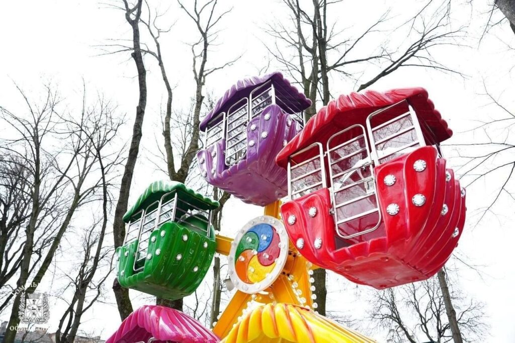 Первый из них – колесо обозрения, которое называется детским, но предназначено для людей любого возраста. Пять ярких разноцветных кабинок могут вращаться с разной скоростью, которая регулируется оператором. Один модуль рассчитан максимум до 120 килограммов. Кататься на колесе могут дети разного возраста, малышам до трех лет “прокат” бесплатный. Новинку запустят в течение недели — двух.