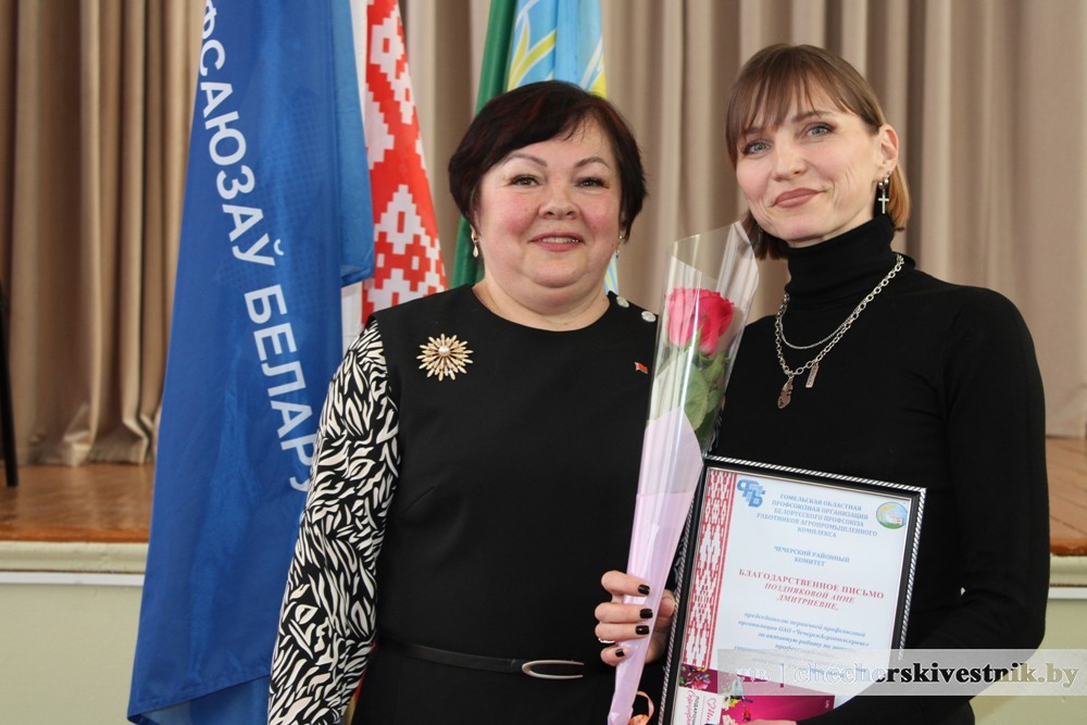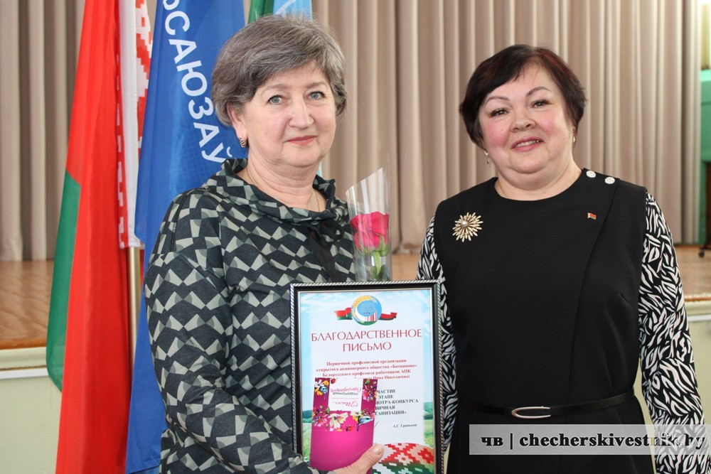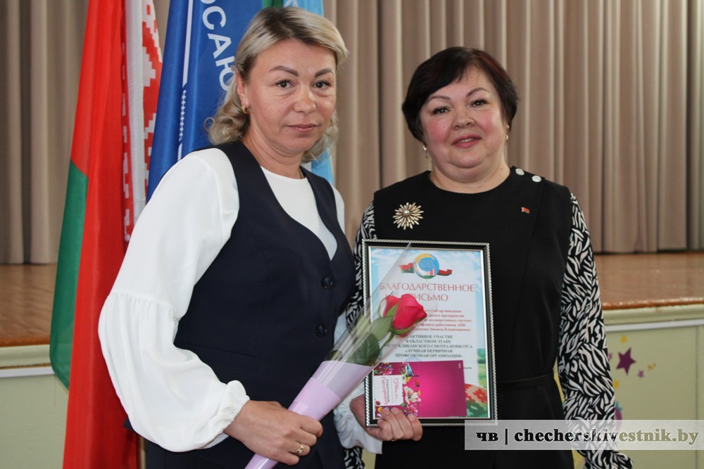 Анжелика Кравченко поблагодарила присутствующих, а также руководителей организаций и предприятий за сотрудничество и вручила благодарности Гомельской областной профорганизации работников АПК за активное участие в областном этапе республиканского смотра-конкурса на лучшую первичку. И подкрепила награды денежными сертификатами.