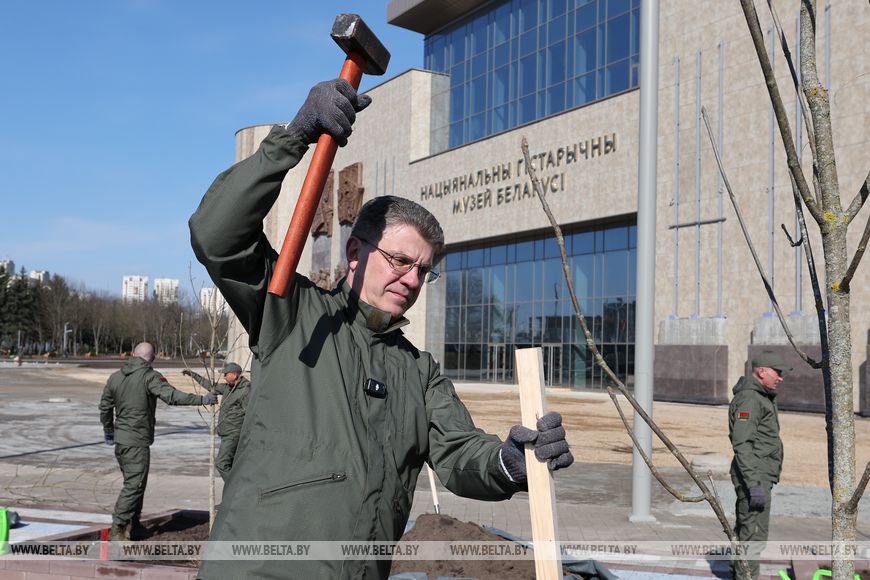 Кроме того, Александр Лукашенко вместе с другими участниками субботника высадил деревья на прилегающей к музею территории. Именно на создание постоянной экспозиции строящегося Национального исторического музея Беларуси и иные сопутствующие этому работы будут направлены денежные средства, заработанные от проведения весеннего субботника.