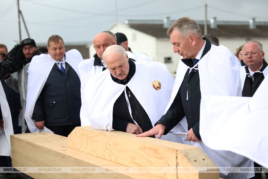 В октябре прошлого года Президенту в “Агро-Лясковичах” представили проект опытного строительства молочно-товарного комплекса из деревянных конструкций, которые произведены из местного сырья. Он отмечал, что в лесу порой в буреломах гниет много сырья, “а мы не можем сарай из этой древесины построить”. “Поэтому ему дано поручение проконтролировать, сколько это будет стоить – деревянная конструкция. И, если ее по технологии обработать, сколько она будет стоять”, – сказал Президент.