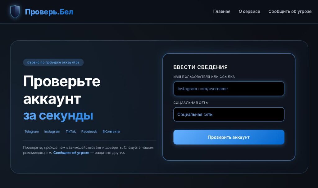 В Беларуси запущен сервис для проверки аккаунтов на мошенничество “Проверь.бел”. Сайт содержит сведения об аккаунтах в социальных сетях и мессенджерах, которые являются мошенническими.