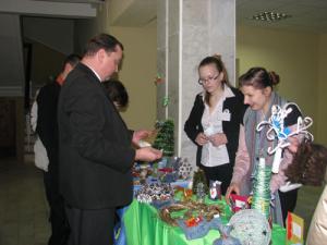Выставка-продажа «Спеши творить добро», которая проходила в фойе районного исполнительного комитета, привлекла внимание и государственных служащих, и случайных посетителей, пришедших в учреждение по своим делам. Елки из шишек, мишуры, новогодние игрушки, сувениры сделали воспитанники Центра коррекционно-развивающего обучения и реабилитации с помощью педагогов, а в роли продавцов попробовала себя волонтерская группа «Рука в руке» из числа гимназистов. Кроме того, что поделки получились действительно очень красивые, креативные и оригинальные, их невероятно положительную энергетику трудно передать словами. Сувениры станут интересными деталями в домах своих новых хозяев, приятными новогодними подарками, придадут сил и хорошего настроения на рабочем месте, а вырученные деньги – неплохой вклад в развитие творческих способностей ребят с ограниченными возможностями.