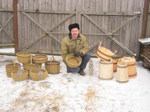 Корзинки Сергей Зубарев плетет из лозы, бочонки и тазики мастерит из сосны, ольхи, осины, ели, дуба. Можно себе представить, что попить холодной воды из сделанного из натурального дерева ведерка – одно удовольствие. То же самое: захватить с собой в баню не пластмассовый тазик, а в деревянный!