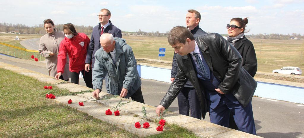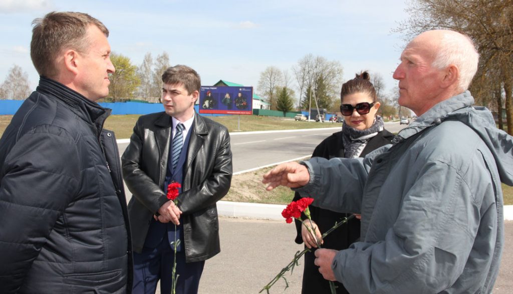 Красные гвоздики к памятнику 44-м отселенным деревням Чечерского района возложили председатель райисполкома Юрий Деркачев, его заместители Юлия Басаргина и Александр Кужель, начальник отдела идеологической работы и по делам молодежи Вадим Крупенькин, представители молодежной и профсоюзной общественных организаций, а также ликвидатор последствий аварии Александр Климов.