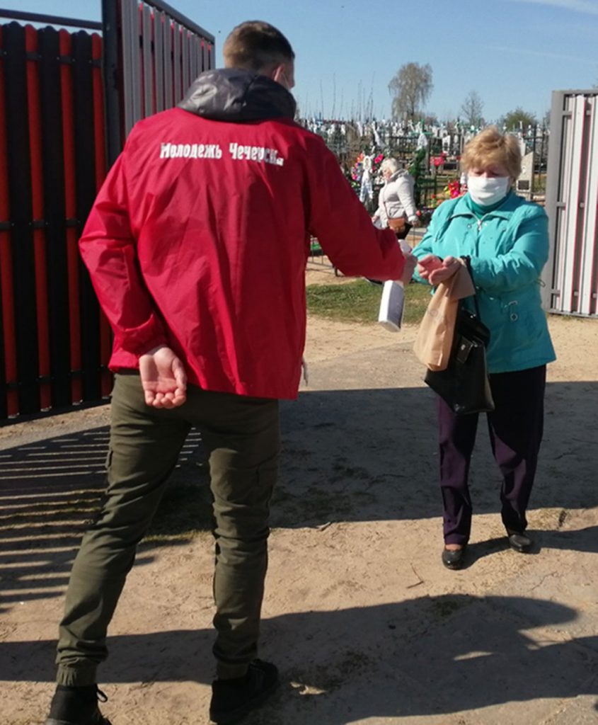 На городском кладбище райцентра не так многолюдно, как обычно на Радоницу. Это значит, что доводы, звучащие со всех сторон, народ услышал. При этом весь погост убран, на могилах стоят свежие цветы, а на крестах весят рушники. Многие сделали это заранее. Есть и те, кто пришел на кладбище сегодня. У входа их встречают активисты молодежного движения. Они напоминают гражданам, что вместо объятий следует держать социальную дистанцию и выдают средства индивидуальной защиты, предлагают продезинфицировать руки антисептиком. Все это для того, чтобы предотвратить возможность инфицирования.