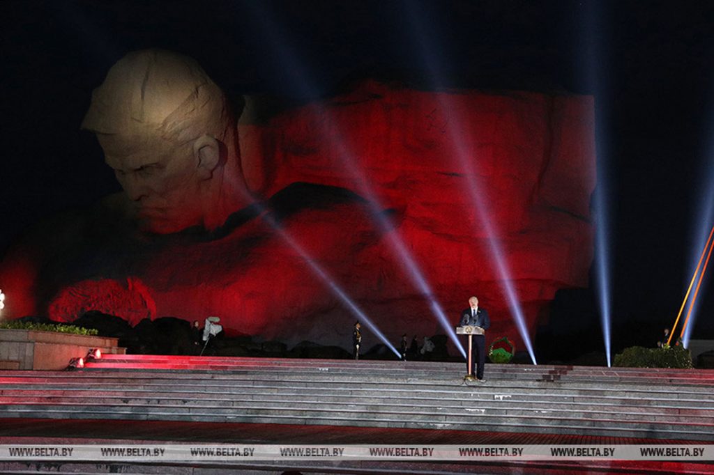 «Мы точно знаем, что их стремление к свободе и справедливости, преданность Родине живут в каждом из нас. И это та наследственность, которая делает суверенитет нашего государства неоспоримым фактором. Очень созвучно сегодняшним дням», – продолжил белорусский лидер. Он подчеркнул, что нужно продолжать и сейчас бороться за свою независимость, суверенитет против тех, кто навязывает нам свои идеи, кто идет сюда, чтобы разрушить мир и все то, что создано в стране. И делать это необходимо во имя памяти о многочисленных жертвах войны, о погибших в сотнях сожженных белорусских деревень. «Все, что мы сегодня имеем, хоть и создали это своими руками, принадлежит не только нам. Оно принадлежит также и им, а еще будущему – нашим детям, – сказал Александр Лукашенко. – Время выбрало нас, и мы должны решить проблемы, которые стоят перед нами».