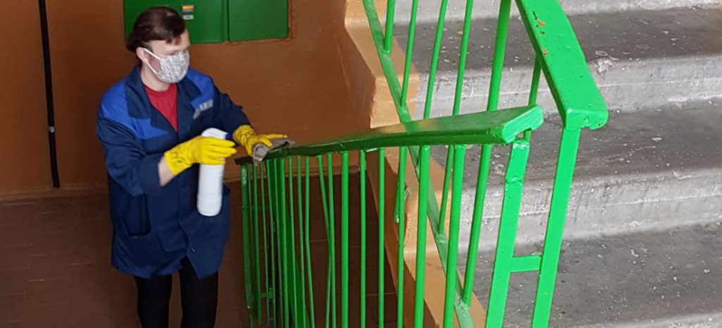 С апреля в работе коммунальной службы произошли изменения. К привычным будням коммунальщиков добавились профилактические меры по недопущению распространения коронавируса. Ежедневно бригада рабочих из четырех человек выходит на обработку подъездов многоэтажек.