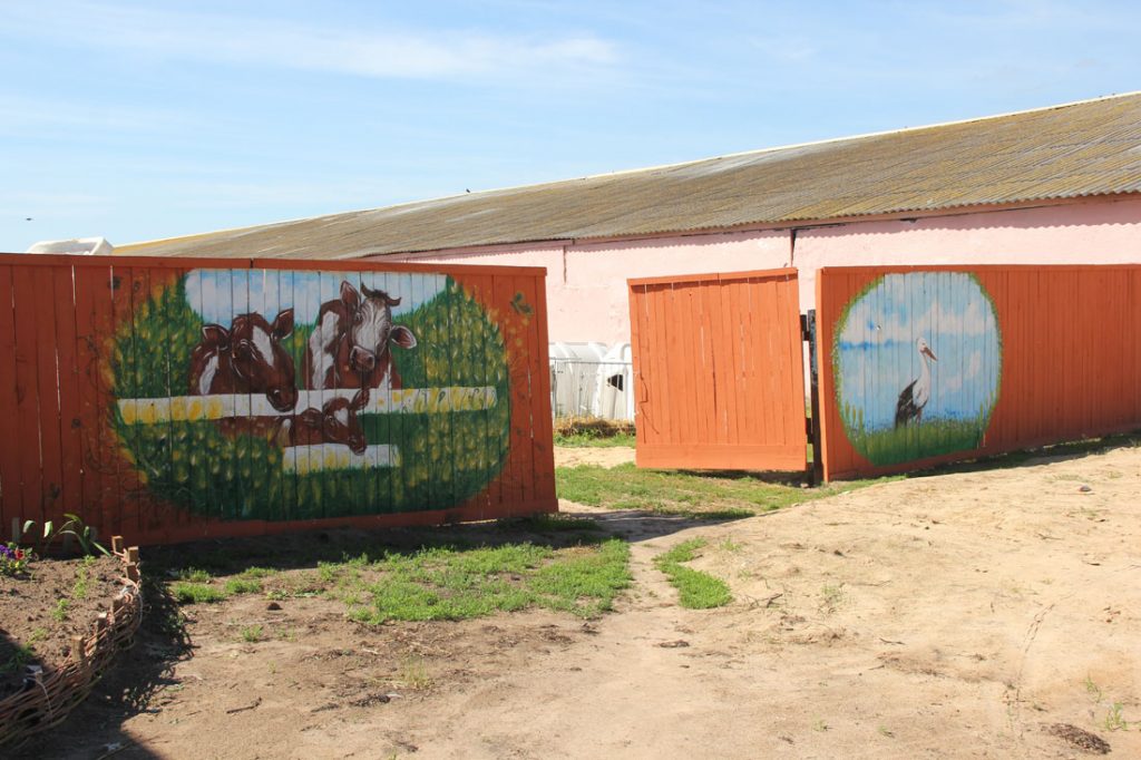 На ферме содержится около 400 голов КРС, 265 из них – дойное стадо. Кроме того, коллектив выхаживает более 40 телят. Работа эта тяжелая, а значит, нужно позаботиться о том, чтобы люди трудились в комфортных условиях. Стоит отметить, что ремонтом фермы занимается и администрация сельхозпредприятия. Специалисты задействованы на покраске помещений и уборке. Главный бухгалтер Алена Гапеенко нарисовала на ограждении красивые тематические картины.