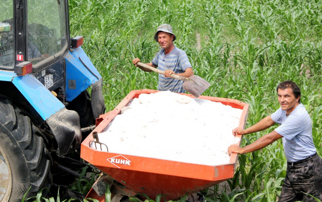 Працоўны дуэт у складзе вадзіцеля Аляксандра Струкава і механізатара Валерыя Хаткевіча з сельгаспрадпрыемства «Вазнясенск» гэтымі днямі заняты на падкормцы кукурузы. Вось ужо некалькі дзён мужчыны апрацоўваюць палеткі каралевы палёў мачавінай, каб расліна ўкаранілася і набіралася сілы.