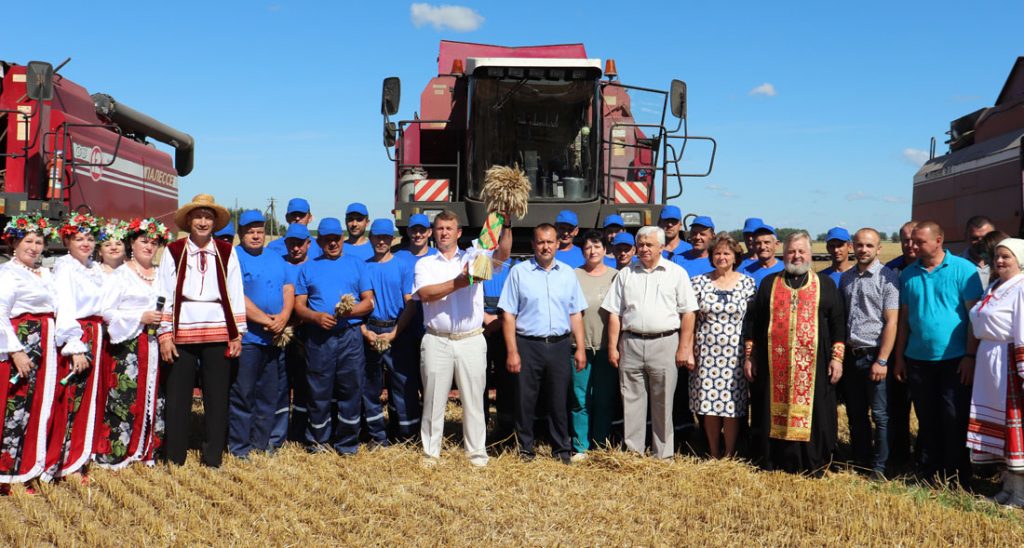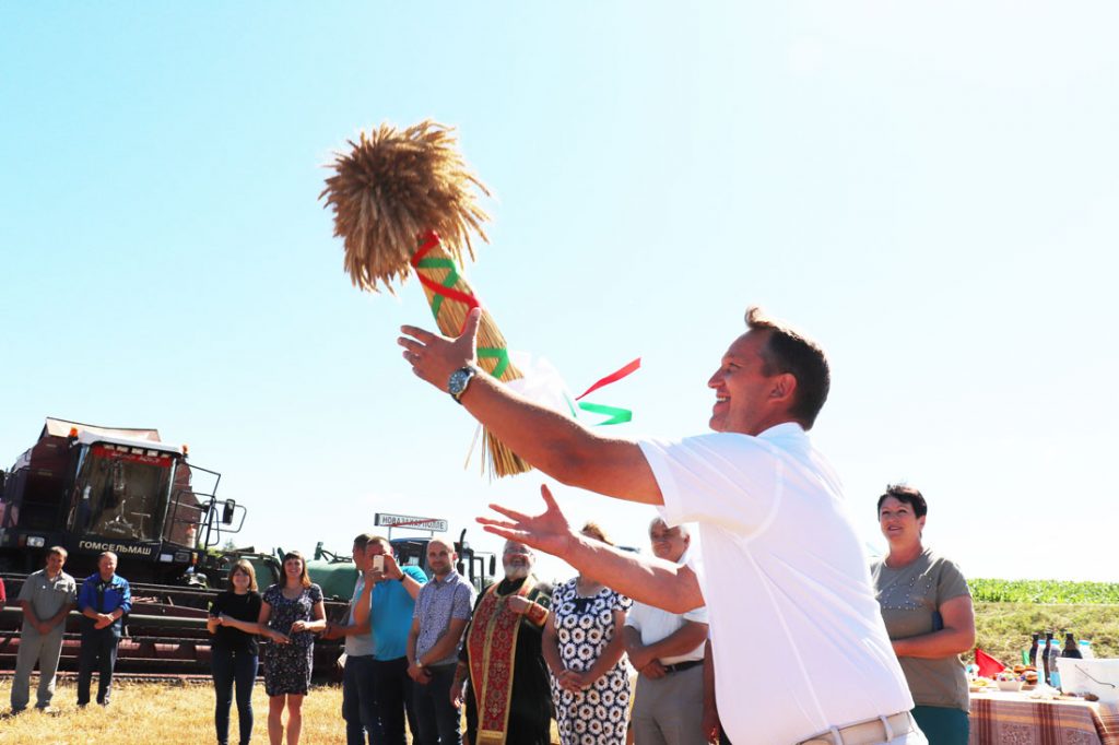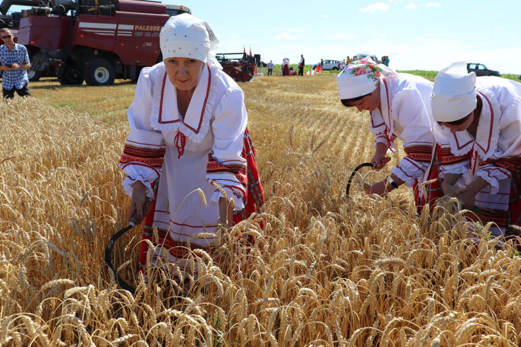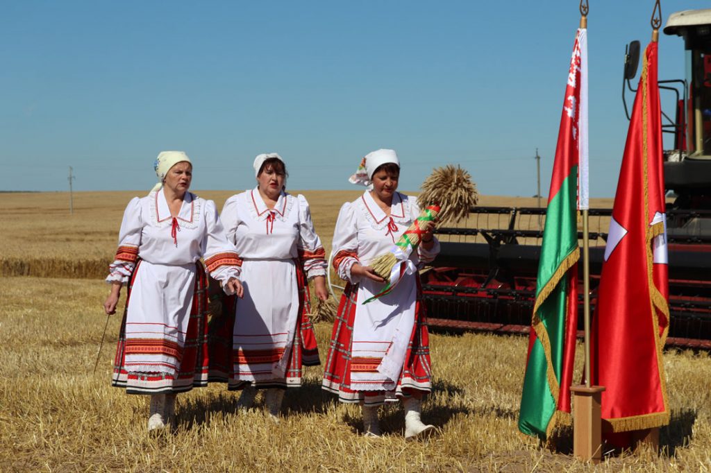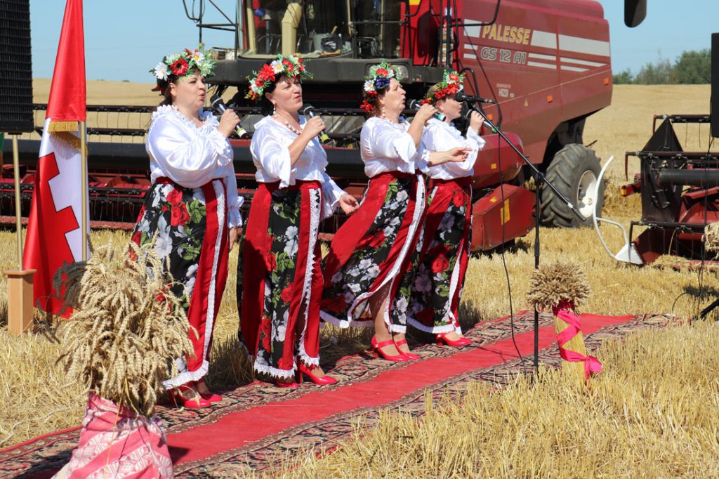 По традиции, в поле вышли женщины в национальных костюмах и серпами, которые принадлежали их матерям, сжали первый сноп. Сноп передали главе района. Юрий Деркачев высоко подбросил его, чтобы урожай был богатым. Председатель райисполкома отметил, что первый сноп тяжелый, и пожелал нашему району, чтобы урожай нынешнего года также был весомым.