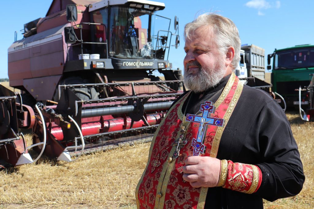 Перед началом доброго дела отец Георгий прочитал молитву и благословил участников жатвы в добрый путь. Местные артисты подарили механизаторам песни. И едва они отзвучали, как заработали мощные моторы зерноуброчных машин, и комбайнеры приступили к работе.