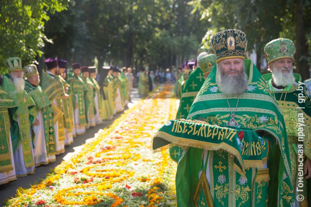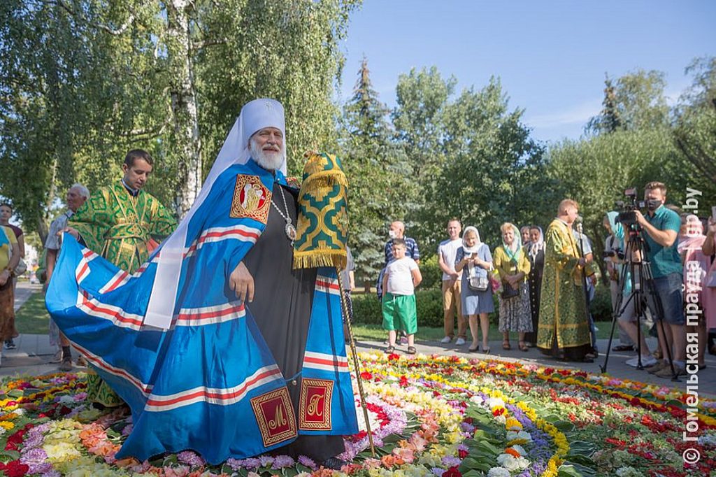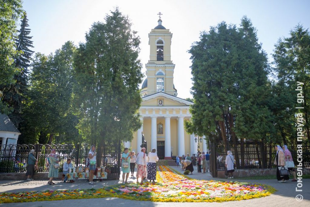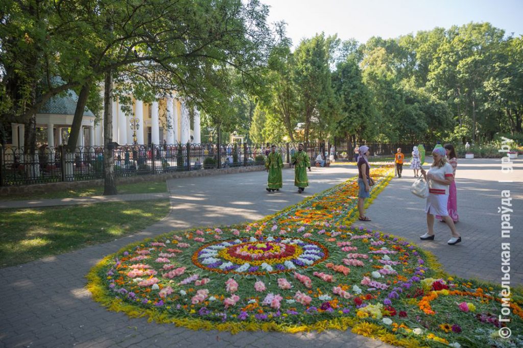 Митрополит Павел вместе с настоятелями и представителями духовенства из храмов области прошли по цветочной композиции к кафедральному собору. За ними последовали прихожане. Многие сняли обувь и шагали босиком, забирали с собой растения и делились друг с другом рассказами об их целительных свойствах. После в Петро-Павловском соборе началась служба в память о преподобной Манефе Гомельской.