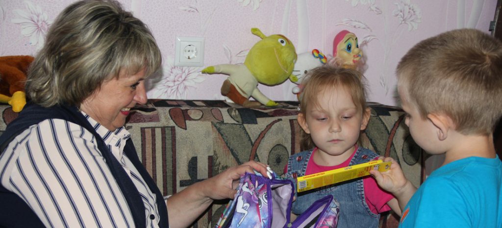 Профсоюз работников образования который год шефствует над домом семейного типа Домоскановых. В этот раз портфель первоклассника привезли Юлии Ганжиной.