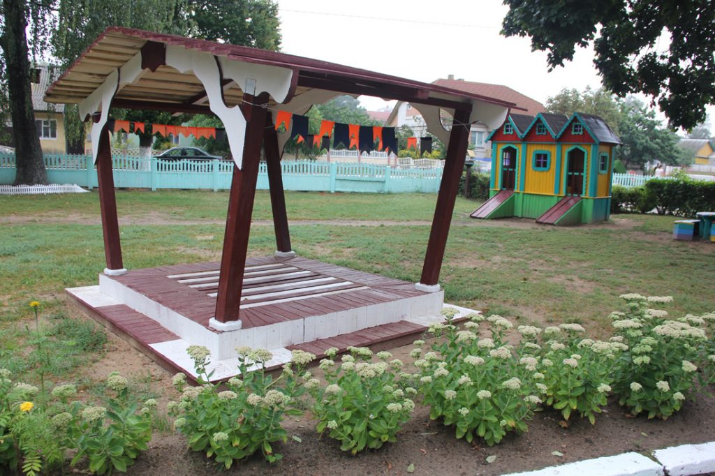 Поскольку для новых воспитанников необходимо и уличное игровое пространство, существенные изменения произошли на прилегающей территории. Сдвинуты границы спортивной площадки, распределены игровые зоны. На некоторых установлено новое оборудование. К примеру, современная песочница появилась благодаря родительской помощи. На стадии завершения – беседка для новой группы, вот-вот установят для ребят еще одну песочницу.