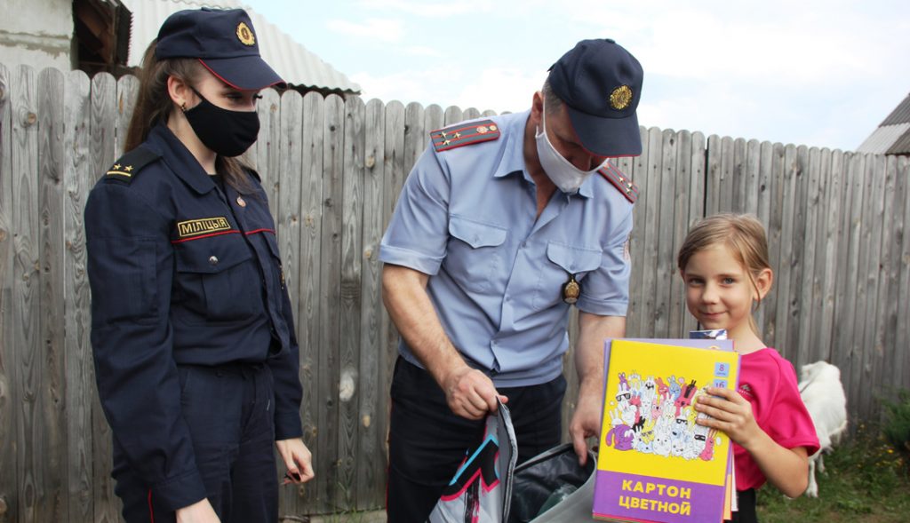 В преддверии учебного года рюкзак с необходимыми принадлежностями милиционеры вручили первокласснице Дарье из многодетной семьи Ольги и Игоря Ивановых.