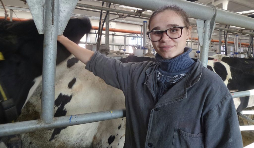 Молоденькая ветврач на ферме «Ветвица» Надежда Демидова предупреждает сразу, что на разговор у нее не более трех минут, ждут помощи рогатые подопечные. Сама девушка из этих мест – родилась и живет в агрогородке «Ботвиново». Вполне довольна жизнью: работает на своей малой родине, на ферме хорошие условия труда и доброжелательный коллектив. Немаловажно – устраивает заработная плата. А начиналось все с того, что в детстве и в юности к ней постоянно прибивались бродячие больные животные. Всех подбирала, тащила в дом и выхаживала.
