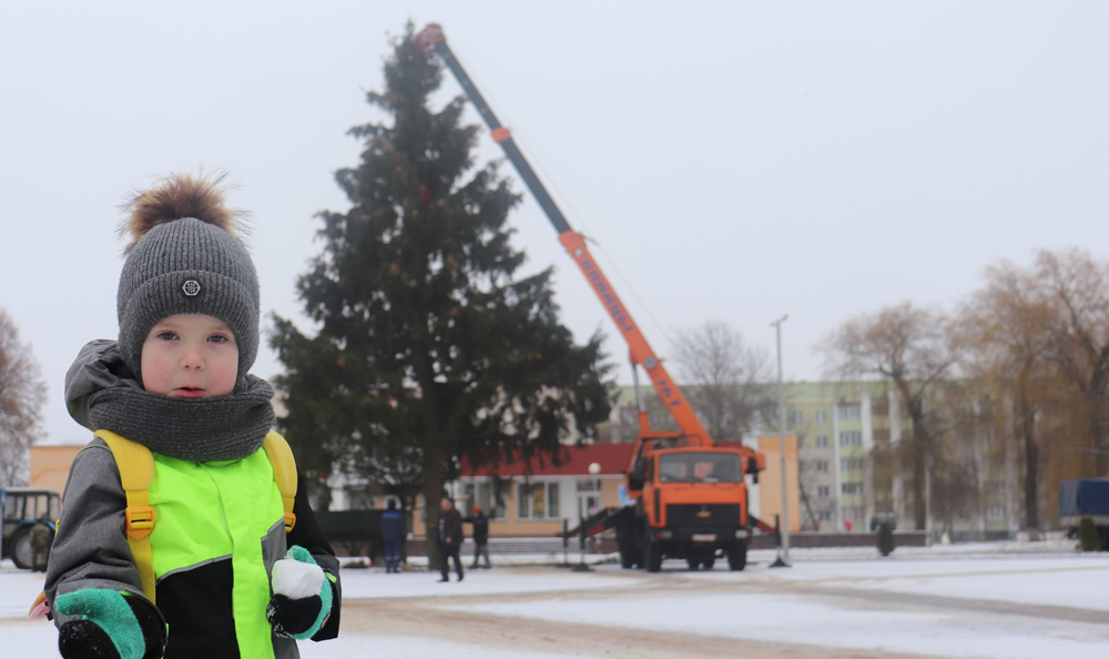 На центральной площади Чечерска устанавливают новогоднюю ель