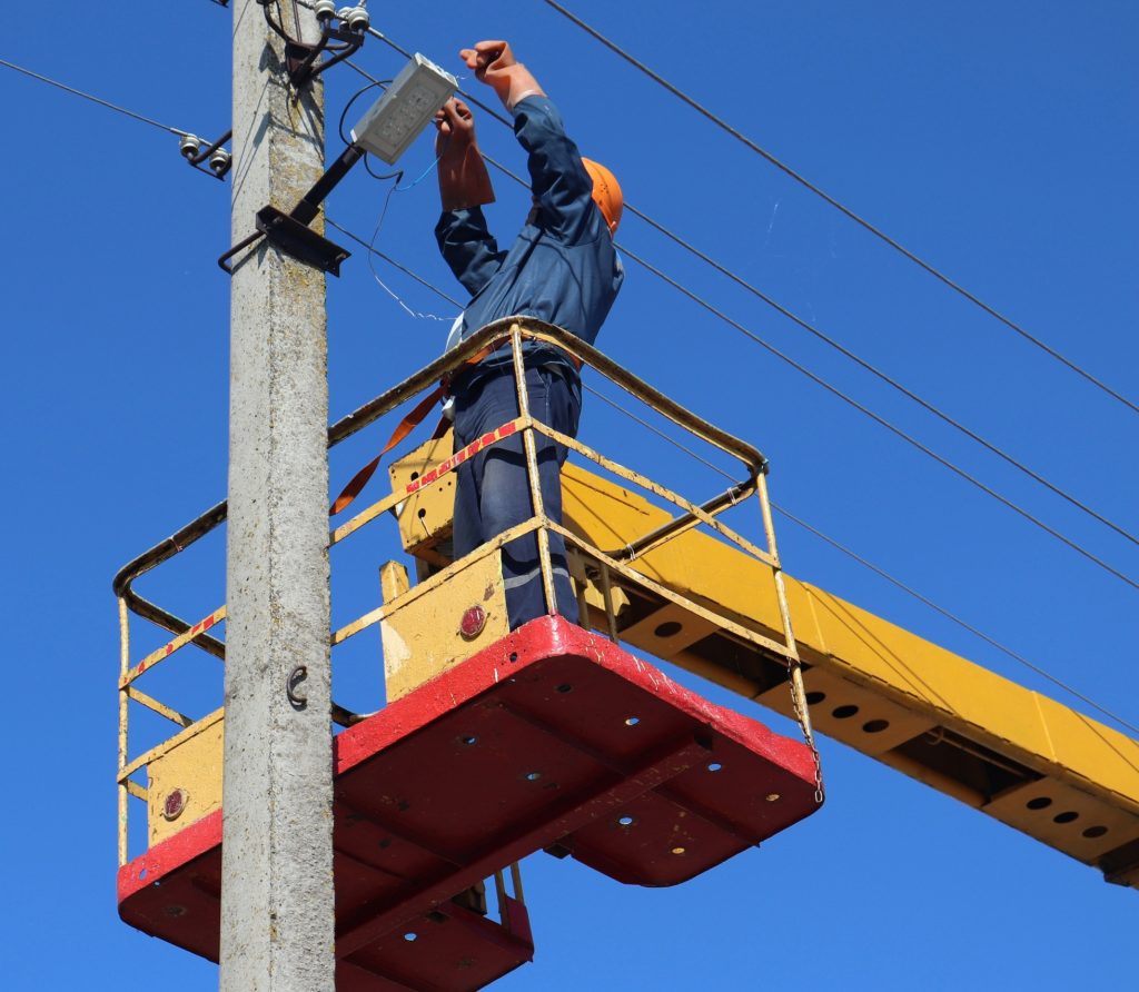 Для этого используется специальная техника, ведь работу нужно выполнять на большой высоте. Светильники – энергосберегающие, это позволяет экономить электроэнергию. Лампы включаются в ночное время автоматически с помощью элементов системы управления освещением, и на улицах становится светло.