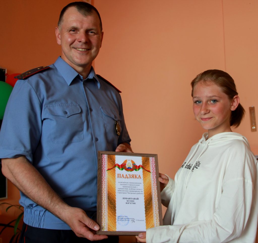 Ученице 6 класса первой городской школы Ксении Лимонтовой начальник РОВД Владимир Бухавцов вручил Благодарственное письмо