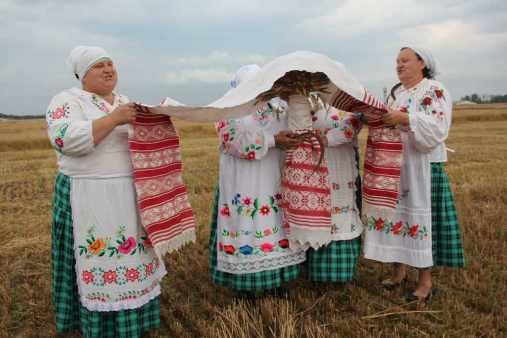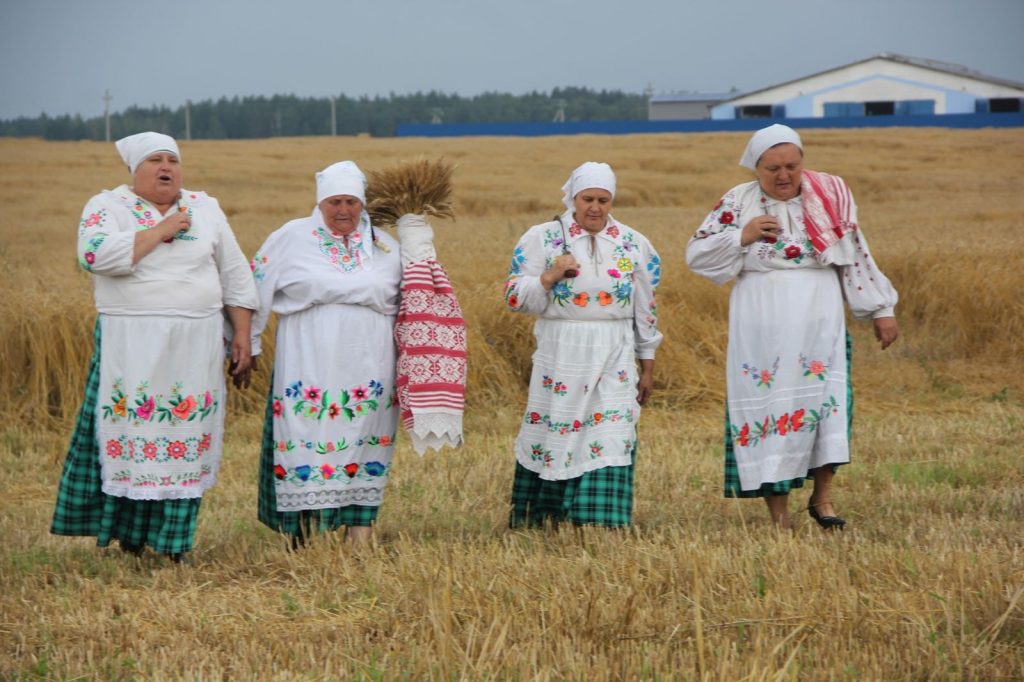 Священник храма Преображения Господня отец Василий, прочел молитву на хороший урожай, освятил технику, которой предстоит убирать поля. А на импровизированной сцене развернулась концертная программа. Голосистые артисты из районного Дома культуры порадовали сельчан. Местные красавицы-жнеи вышли в поле за первым снопом, при этом просили у природы хороший урожай. По традиции самый первый сноп вручили главе района Юрию Деркачеву. И, не теряя времени, техника отправилась в поле. Дорога каждая минута. Убирать золотистые зерна вышли 9 комбайнов. Механизаторы как на подбор – все на жатве не первый год.