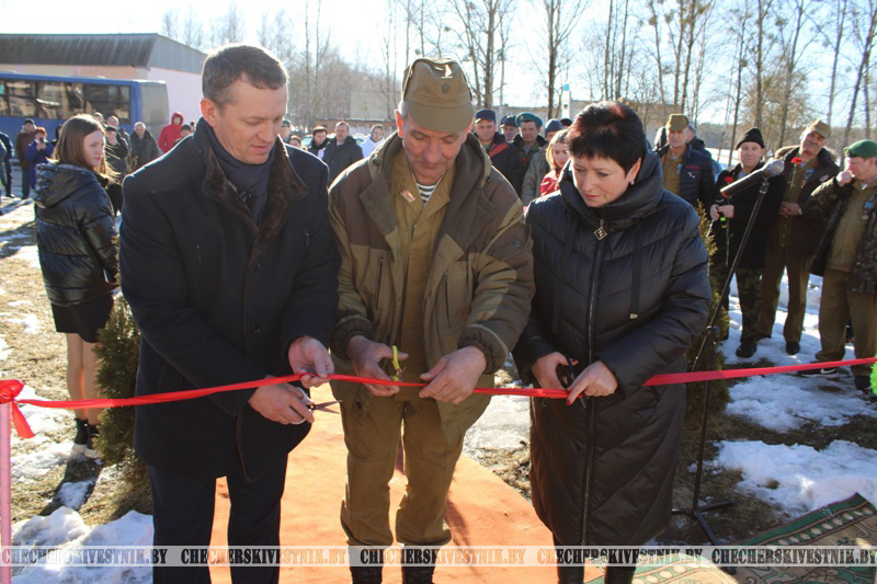 Символичную красную ленту перерезали председатель райисполкома Юрий Деркачев, воин-интернационалист Михаил Малинов и директор сельхозпредприятия «Звезда» Галина Трибунах, которая оказала финансовую поддержку в изготовлении нового памятного знака. Для нее это тоже очень важно, ведь среди близких Галины Петровны также есть те, кто ходил под прицелом афганских боевиков.