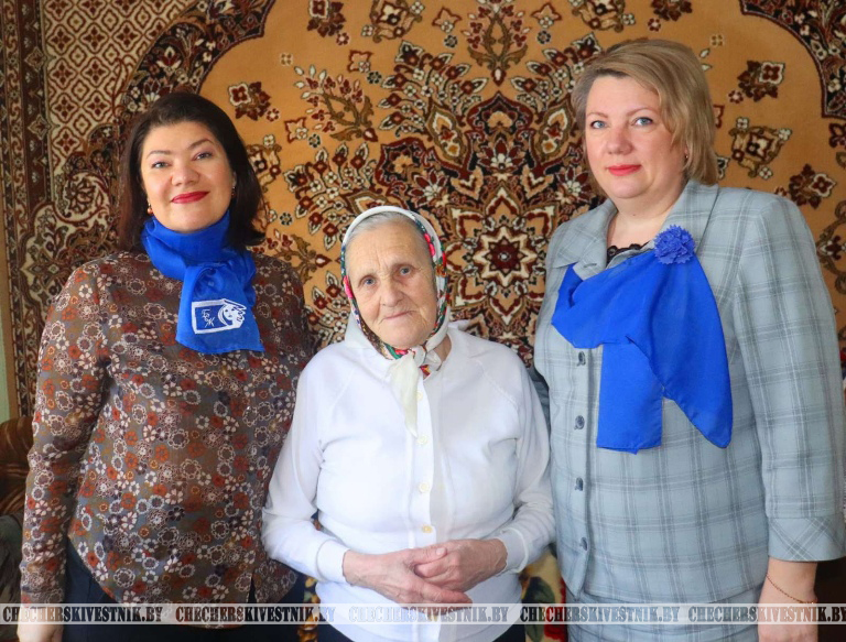 Юлия Сергеевна и Алла Александровна разделили боль утраты, поддержали женщину, выразили свое сочувствие и слова глубокого уважения подвигу ее славного, мужественного сына. Представительницы Белорусского союза женщин передали подарок и пожелали Анне Ивановне никогда не отчаиваться и оставаться таким же оптимистично настроенным человеком.