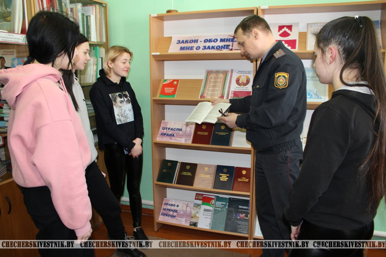 В преддверии Дня Конституции в центральной районной библиотеке заместитель начальника РОВД Денис Новиков встретился с учащимися госпрофлицея на своеобразном профилактическом всеобуче «Думай. Действуй. Выбирай».