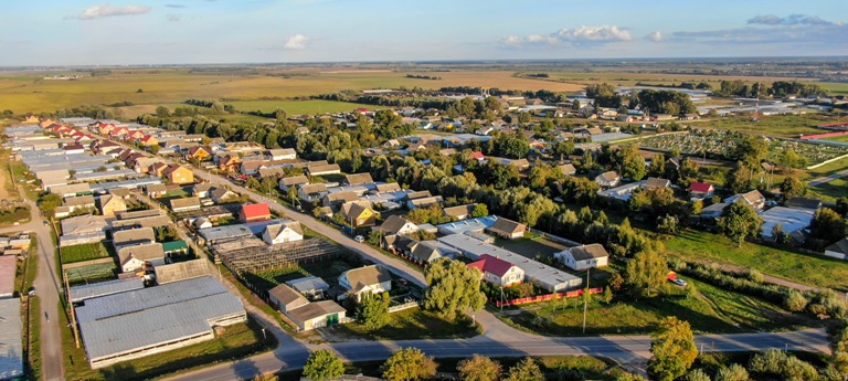14-09-2021 г. Брестская область. Столинский район. Агрогородок Большое Малешево. Репортаж ко Дню народного единства. Панорама, дома, квадрокоптер, DJI. Фото Александра Кулевского
