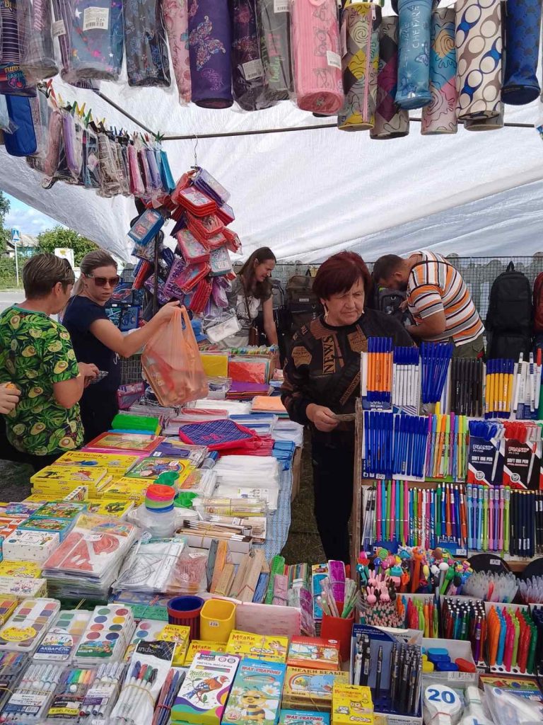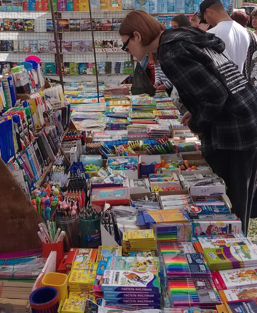 На открытой площадке городского рынка в эту субботу было особенно многолюдно возле торговых точек с канцелярскими принадлежностями.