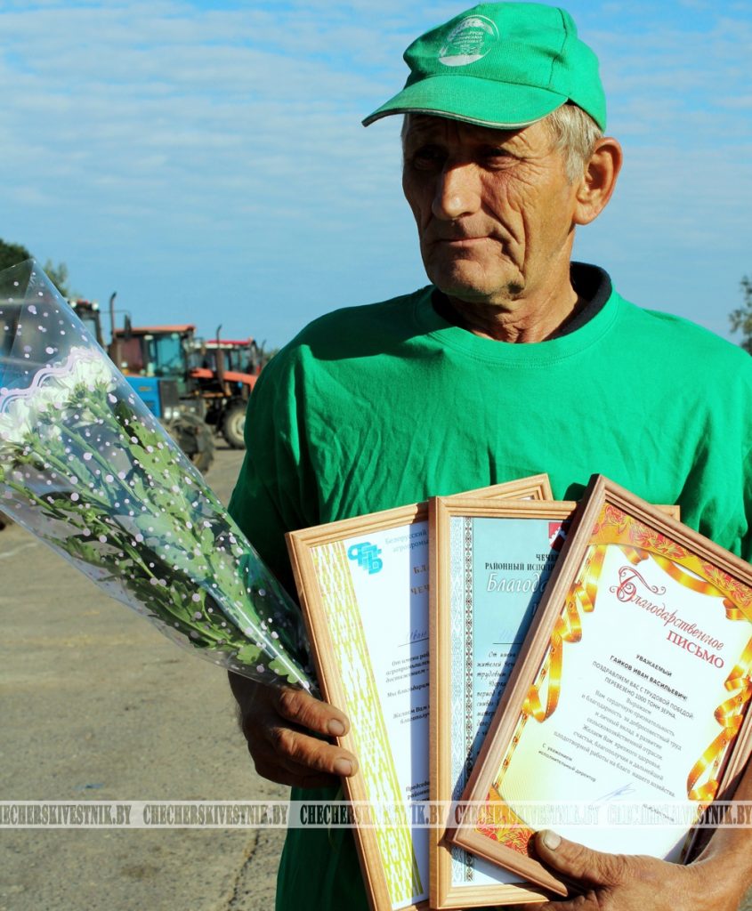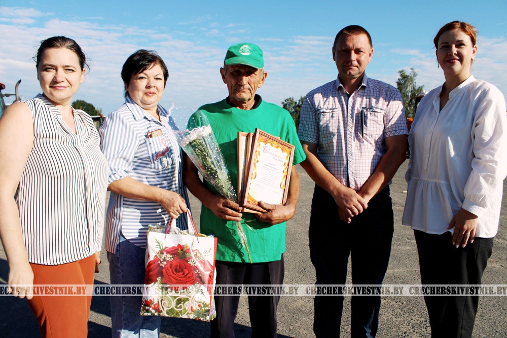 Поздравить третьего тысячника Чечерщины на отвозке зерна делегация из района приехала на мехдвор ОАО «Ботвиново»