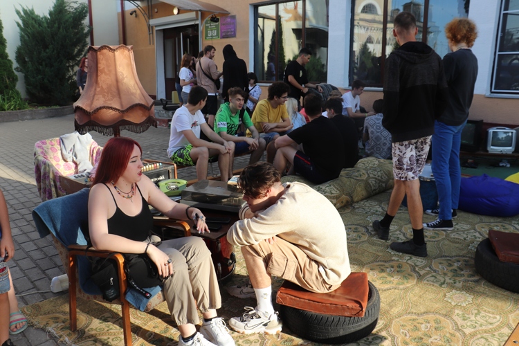 По-домашнему уютной обстановкой квартиры встречала в воскресный вечер молодежь, и не только, площадка у «Космобара». На усланной коврами тротуарной плитке кресла, мягкие пуфики, журнальный столик с проигрывателем виниловых пластинок, рядом торшер…. Чуть поодаль – хит детства представителей поколения 80-х, о которой мечтал каждый подросток, игровые приставки, подключенные к раритетным уже моделям телевизоров. Каждый желающий мог «порезаться» в популярные некогда игры и с ностальгией понервничать, когда отходил джойстик. Напротив – шифонер с художественной литературой: Тургеньев, Шекспир, Ницше и множество произведений других авторов, способных удовлетворить вкус гурмана печатного слова. На импровизированных стенах – картины, пусть не именитых мэтров кисти, но поражающие своей точностью передачи линий, красочностью и глубиной пейзажи, портреты, натюрморты и репродукции воспитанников Гомельского колледжа искусств. Именно в такой атмосфере представили свое творчество горожанам молодые, активные и, бесспорно, креативные участники коллективов «Coverband №17», «C#M», «B.O.O.P.S.», «Not Bad» и «Vancouver». Любимые всеми хиты и новые композиции концертной программы, задорные шутки ведущих покорили зрителя. Это было совершенно очевидно: по лицам ребят и девчонок, улыбкам, по блеску глаз, в которых царили радость и восторг. Не удержав эмоции внутри, многие подтанцовывали под будоражащие ритмы.