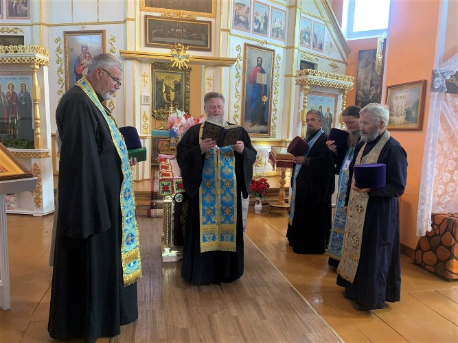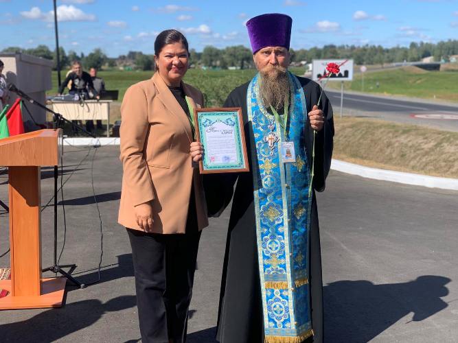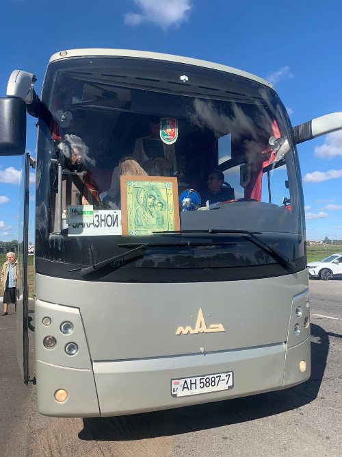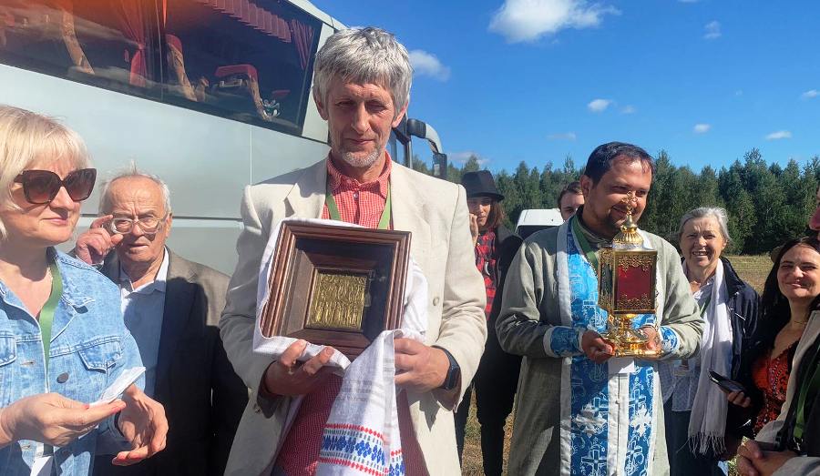 В экспедиции «Дарога да святыняў» впервые участвует Четырехчастная икона Божией Матери. Это писаное собрание чудотворных икон Божией Матери, которые издревле почитаются на Гомельщине. Образ написан в 2020 году по благословению архиепископа Гомельского и Жлобинского Стефана. На молебне икона заняла почетное место в храме. Далее святыня продолжит свой путь с экпедицией.