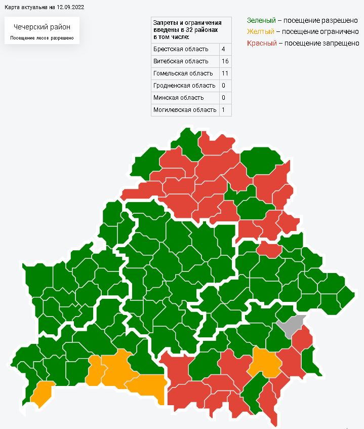 В связи с установившимися благоприятными климатическими условиями и снижением класса пожарной опасности на территории Чечерского района с 12 сентября снят запрет на посещение лесов.