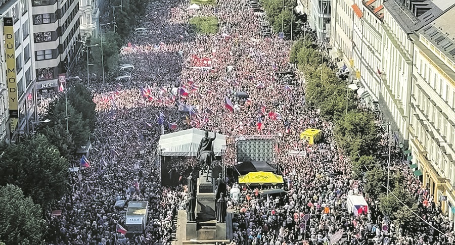 Многотысячная акция протеста в Праге.
