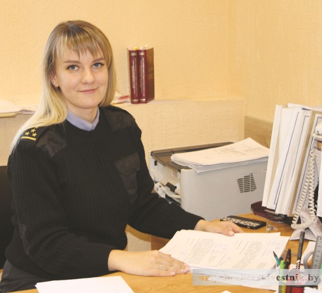 Старший инспектор по учетно-регистрационной работе Александра Концевенко ведет учет и регистрацию правонарушений и преступлений, сведений об утерянном и похищенном имуществе и о лицах, объявленных в розыск. Занимается не только информационной поддержкой деятельности органов правопорядка по предупреждению, раскрытию преступлений, но и предоставляет населению госуслуги.