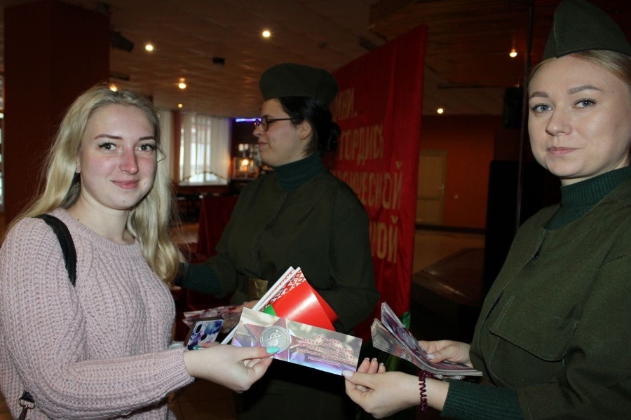 В кинотеатре «Октябрь» прошла военно-патриотическая акция. Ее организаторы в солдатской форме рассказали о цене Победы нашего народа над фашизмом на языке цифр.