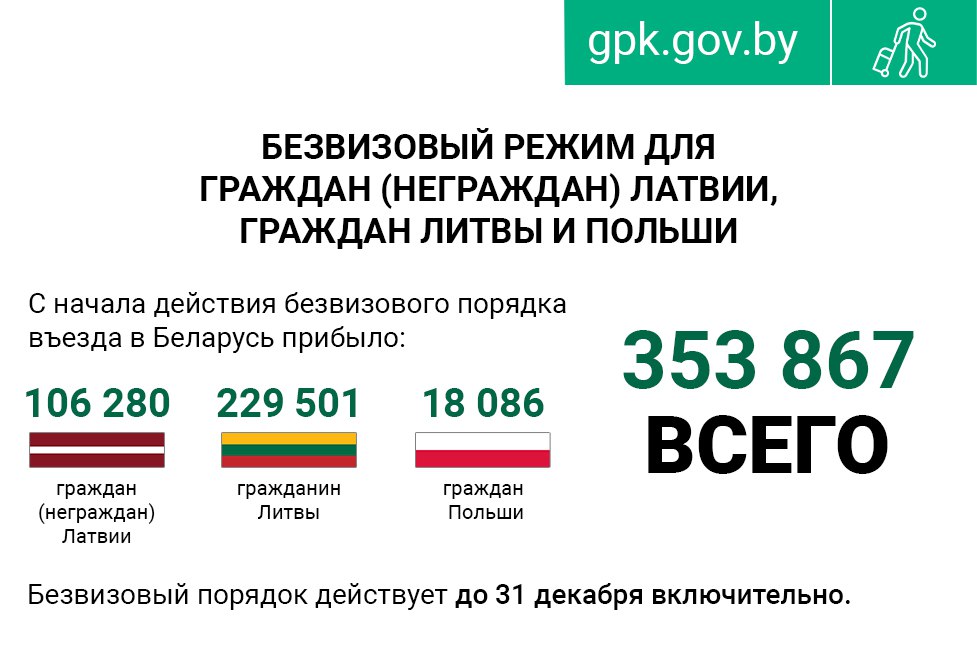 Беларусь по безвизу посетили более 350 тыс. иностранцев