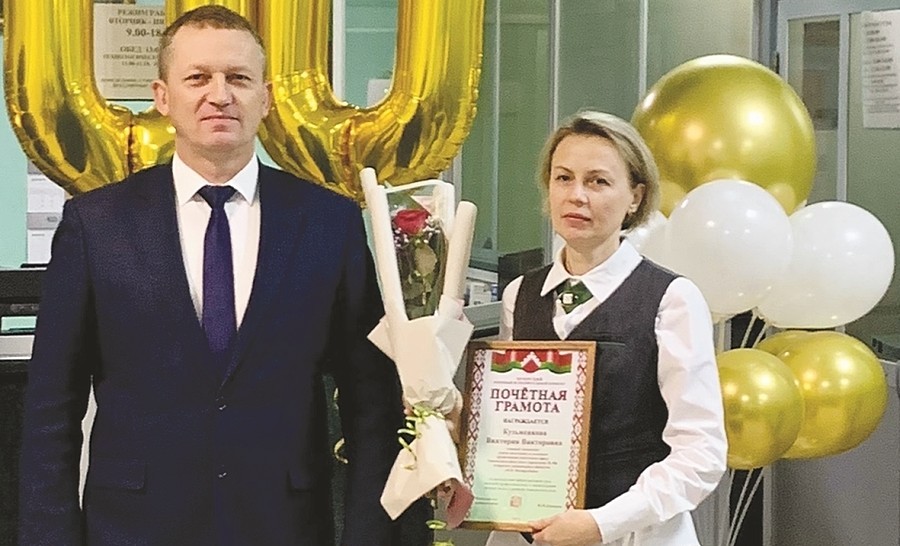 Вручая приветственный адрес директору Елене Ганжиной, глава района отметил, что ни одно кредитно-финансовое учреждение нашей страны не может похвастаться такой историей. Действительно за это время банк сделал значительный шаг в развитии. А слаженный коллектив центра уверенно справляется с задачами, которые ставит перед ними время. Практически каждый сотрудник «Беларусбанка» заслуживает похвалы: как опытный и знающий свое дело. Круглая дата – прекрасный повод высказать слова искренней благодарности за труд, отметить лучших работников и вручить заслуженные награды. За преданность банковской сфере почетными грамотами районного исполнительного комитета награждены специалист по оказанию розничных банковских услуг 1-й категории Валентина Бижунова и главный специалист отдела ипотечного и льготного кредитования Виктория Кузьменкова. Благодарностью – специалист по оказанию розничных банковских услуг Валентина Курганская. Почетными грамотами районного Совета депутатов отмечены специалист по оказанию розничных банковских услуг 1-й категории Аксана Мешкова, специалист по продаже розничных банковских продуктов 1-й категории Наталия Филипченко.